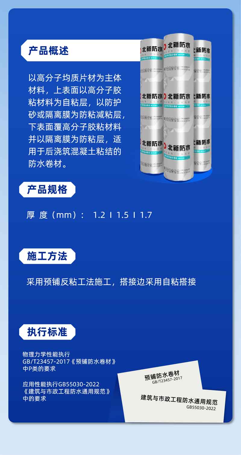 您当前的位置 :首页> 产品展示> 高分子防水材料>背粘型非沥青基高分子自粘胶膜( HDPE)防水卷材
