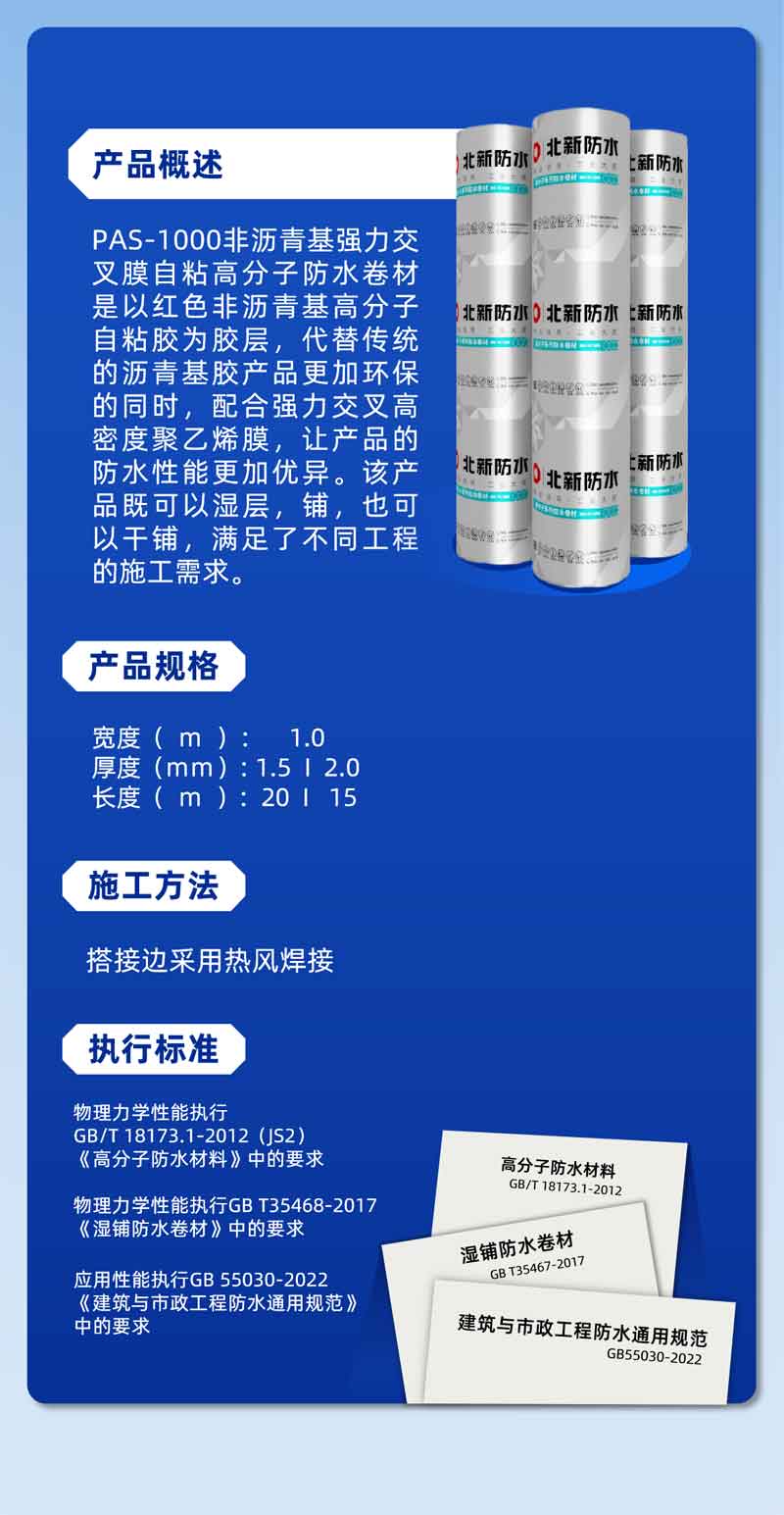 PAS-1000非沥青基强力交叉膜自粘高分子防水卷材