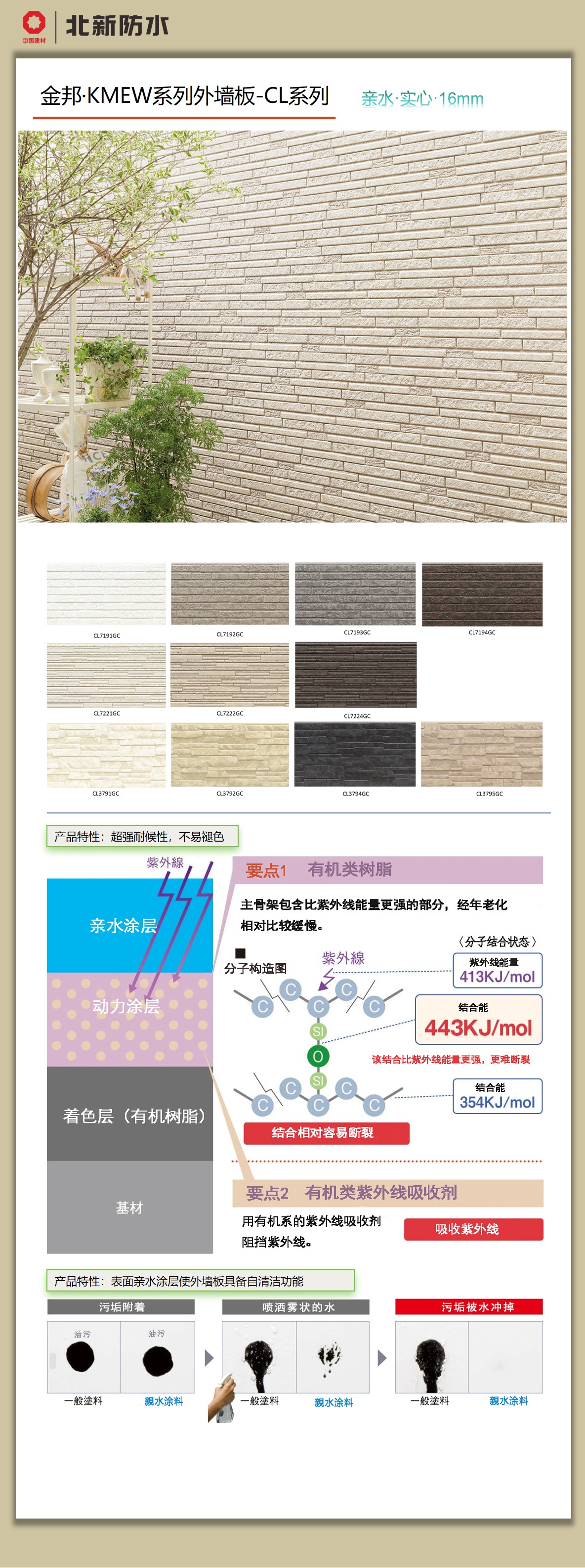 您当前的位置 :首页> 产品展示> 外墙板>金邦·KMEW外墙板-CL系列(親水)