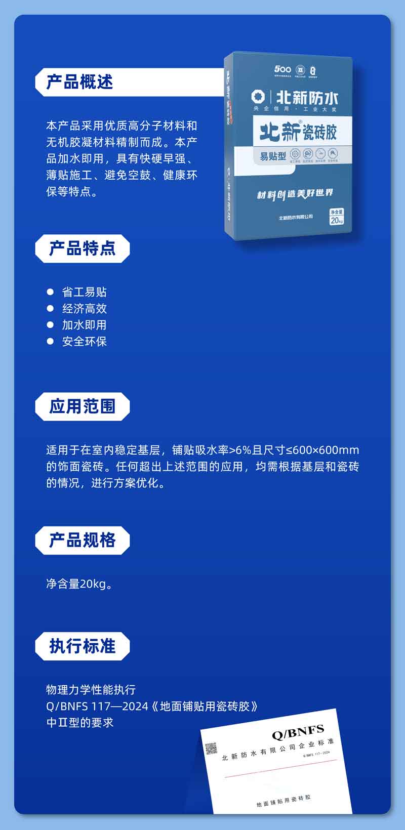 您当前的位置 :首页> 产品展示> 民建瓷砖胶产品>易贴型瓷砖胶