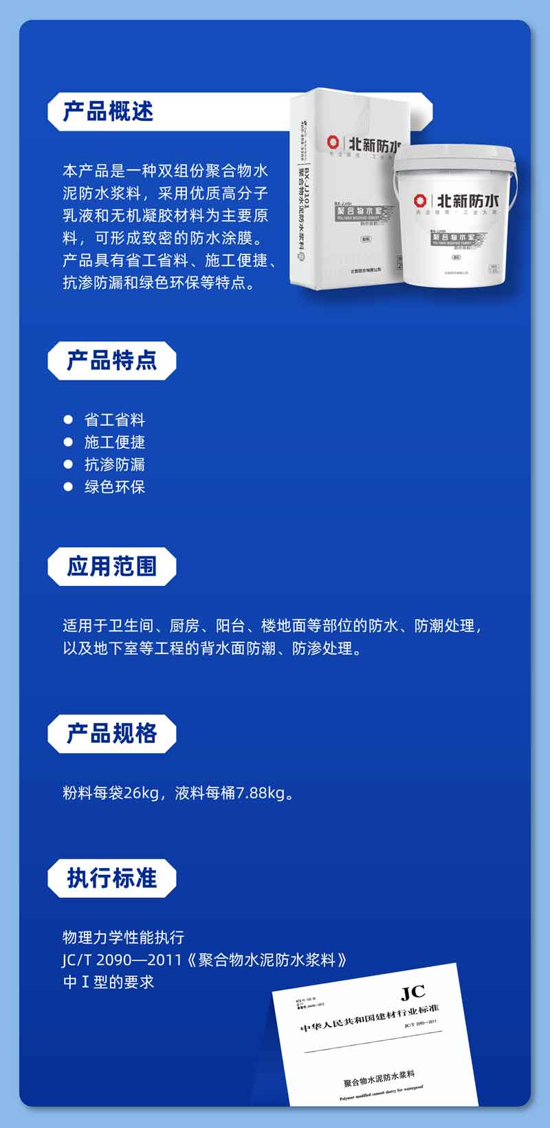 您当前的位置 :首页> 产品展示> 民建防水产品>聚合物水泥防水浆料